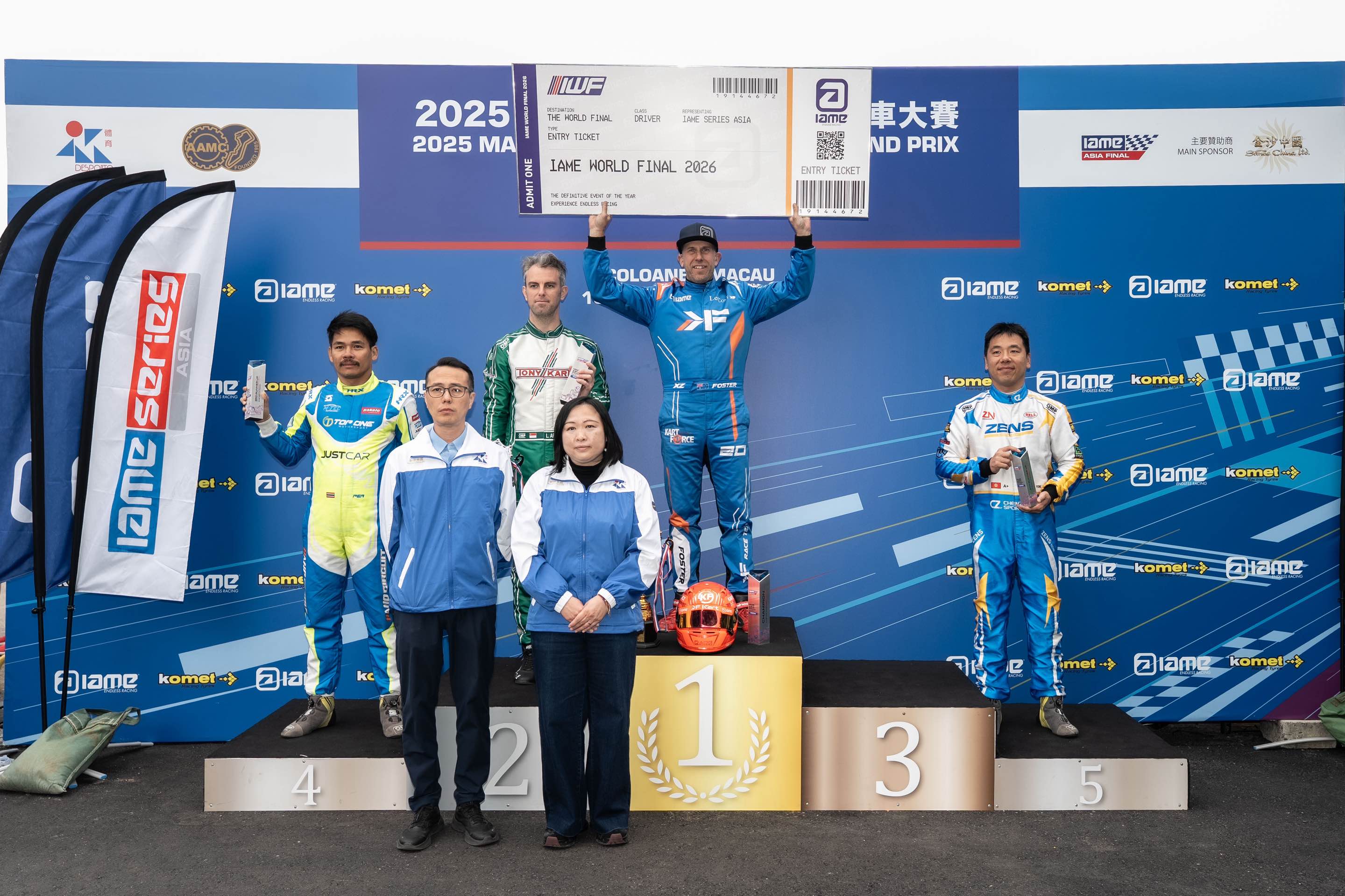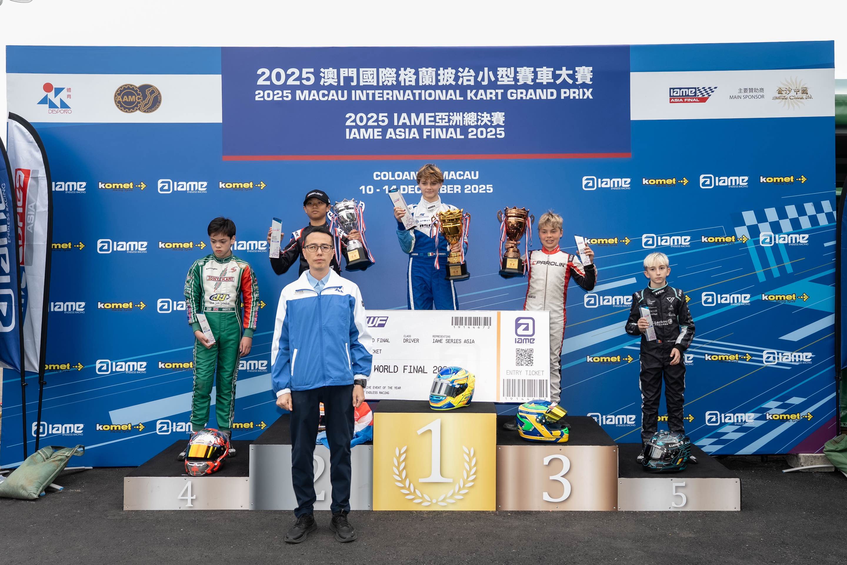 The 2025 Macau International Kart Grand Prix, organized by the Sports Bureau, the Automobile General Association of Macao-China, OTK Kart Asia and IAME Asia, and sponsored by Sands China Limited, concluded today (December 14) at the Coloane Karting Track, featuring races of the 2025 IAME Asia Final (Cadet, Junior, Senior, Master). The results of today’s finals are as follows: