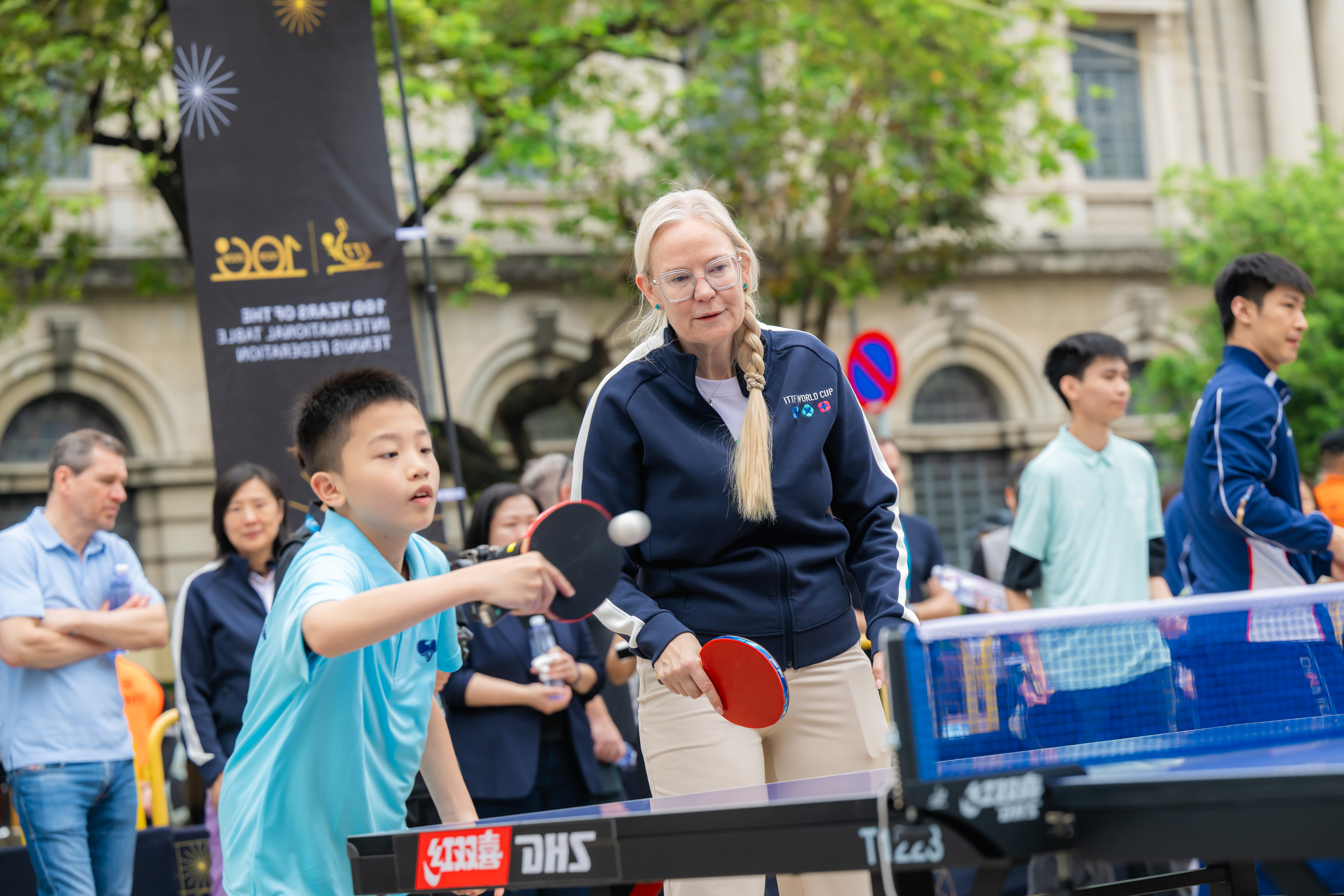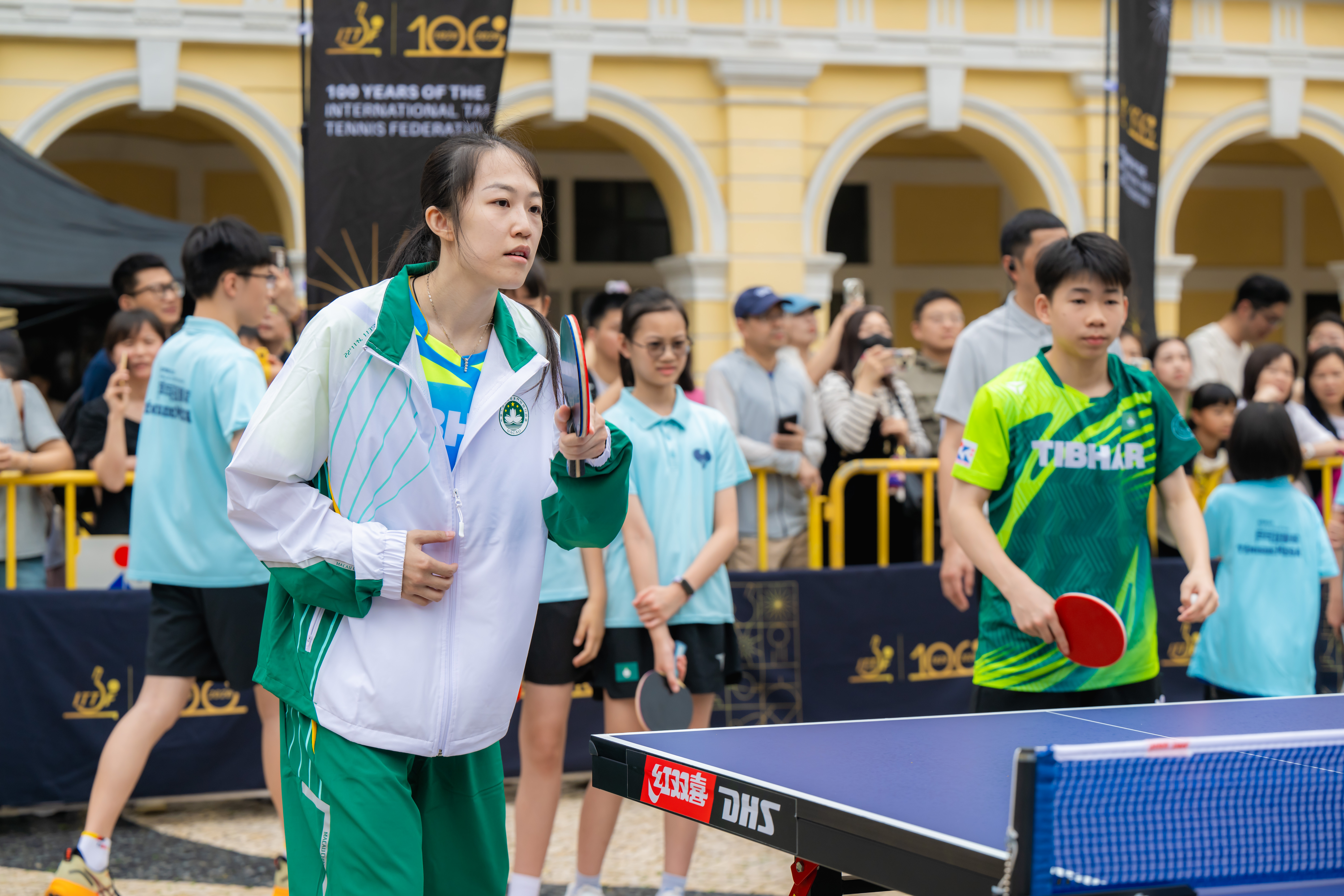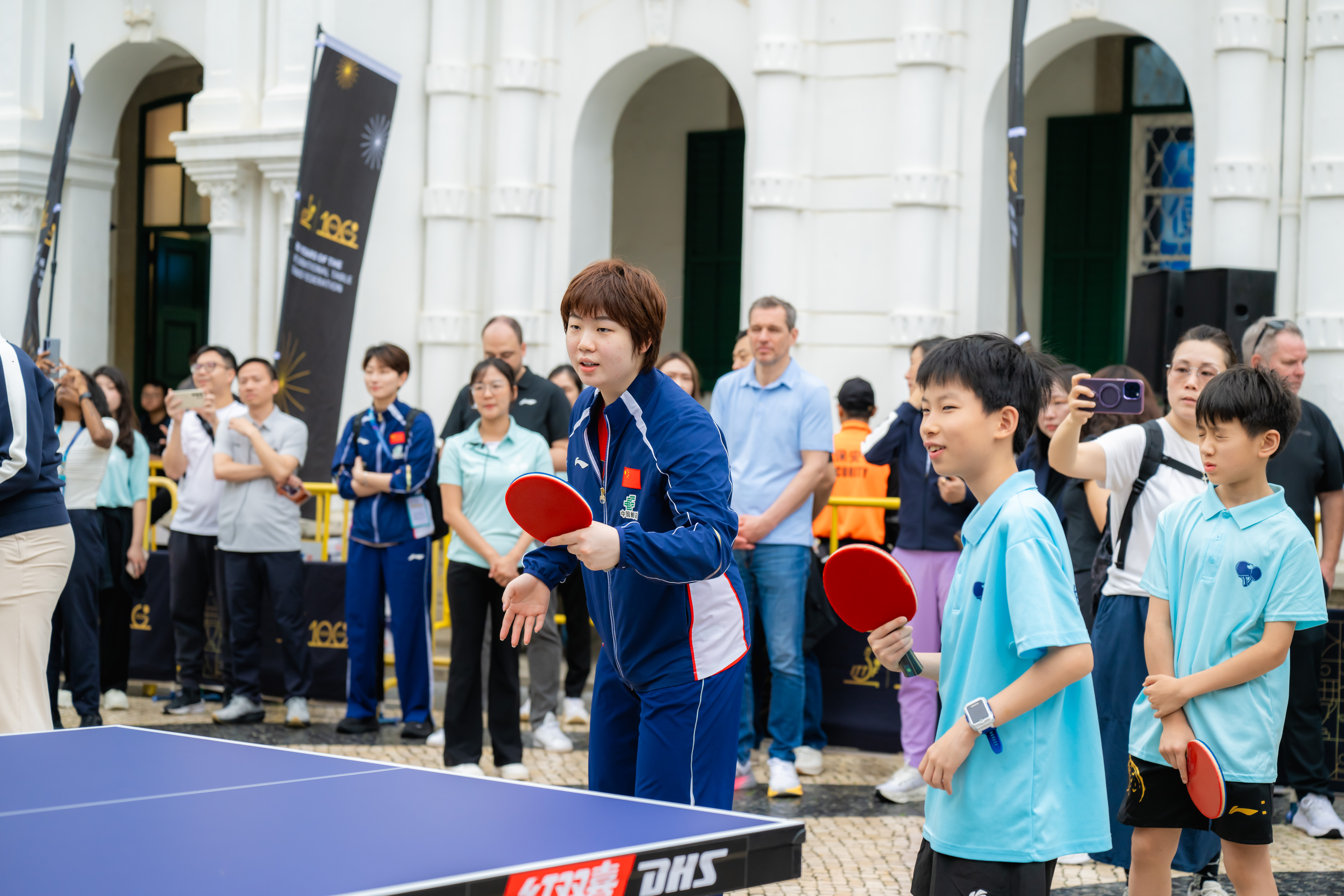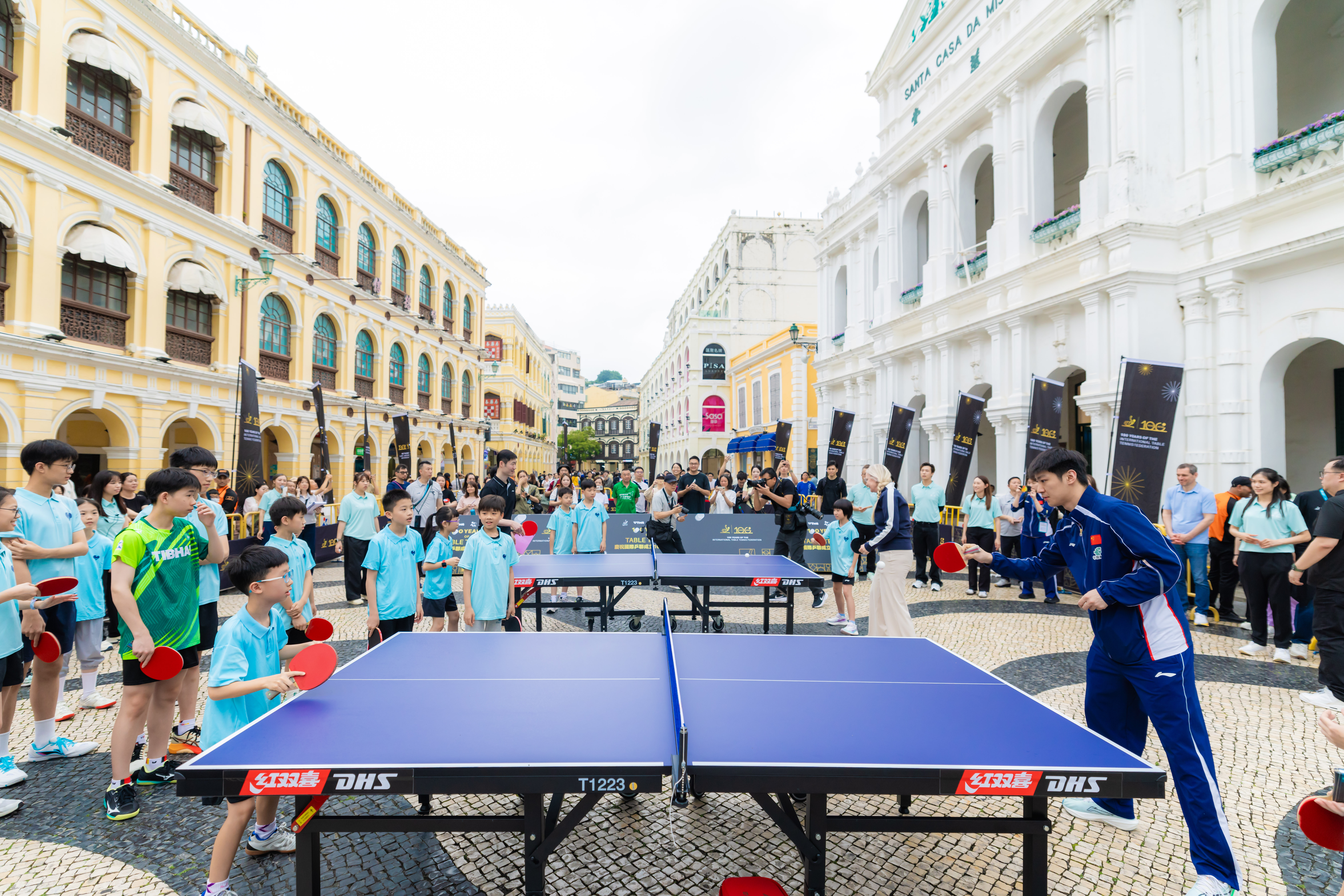 A cerimónia teve lugar na manhã de hoje (dia 4), no Largo do Senado. O evento contou com a presença de representantes da ITTF e da Associação Chinesa de Ténis de Mesa (CTTA), bem como dos jogadores chineses, Kuai Man e Xue Fei, e da atleta de Macau, China, Leong On Na, que interagiram e trocaram experiências com alunos da Escola de Ténis-de-Mesa Juvenil de Macau. Entre os convidados de honra na cerimónia estiveram: Petra Sörling, membro do Comité Olímpico Internacional (COI) e Presidente da ITTF; Michael Mronz, membro do COI; Lei Si Leng, Presidente substituta do Instituto do Desporto de Macau; Wang Liqin, Presidente da CTTA; Buddy Lam, Director de Assuntos Corporativos do Galaxy Entertainment Group; Virginia Sung, Vice-Presidente da ITTF; Steve Dainton, CEO da World Table Tennis (WTT); Nicole Chen, Vice-Presidente World Table Tennis Management Group (WTMG), e Hoi Kong Hong, Director-Geral da Associação Geral de Ping-Pong de Macau.