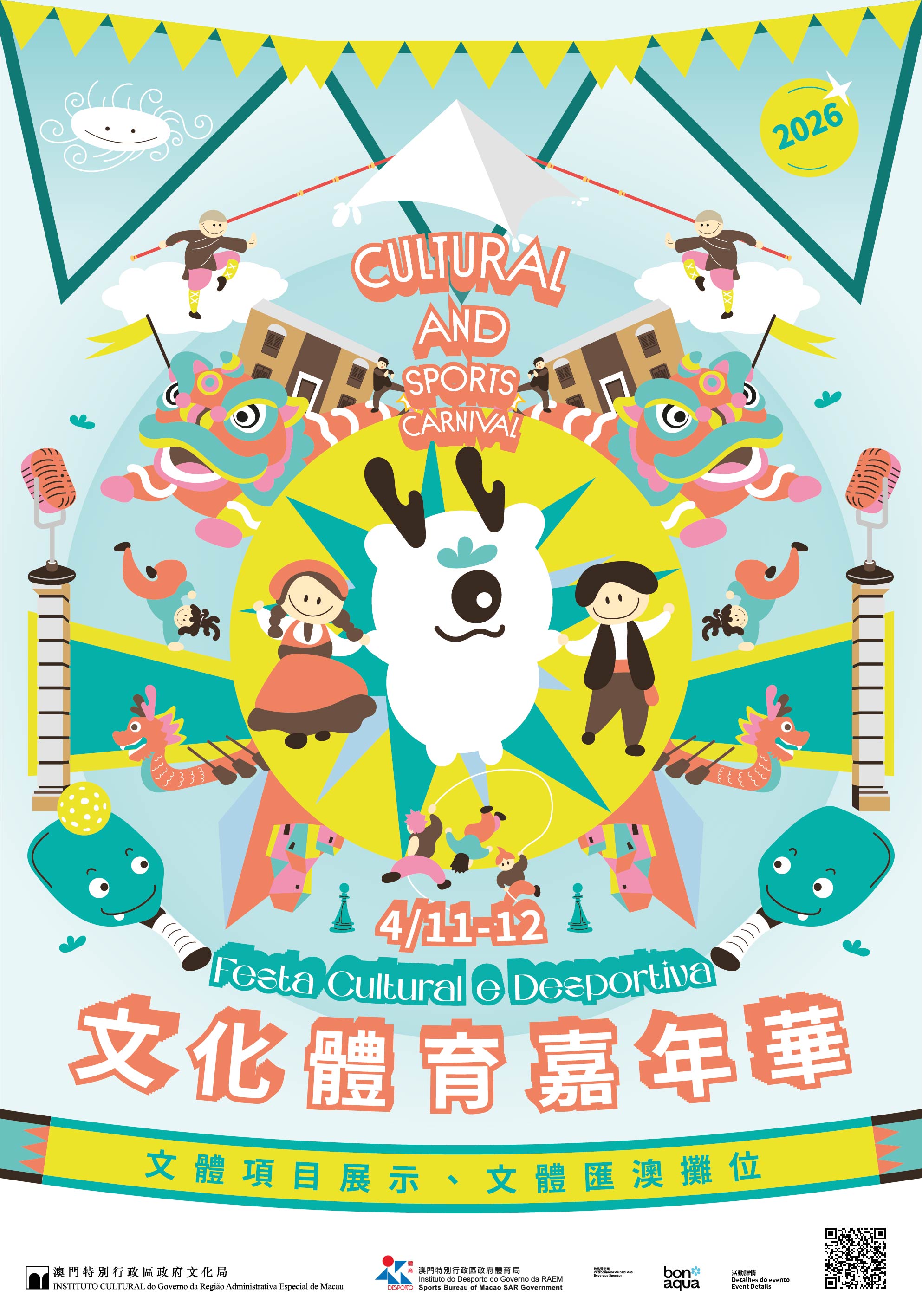 文化局及體育局將於4月11日至12日,在南灣湖水上活動中心主會場及多個世遺景點、社區,合辦“文化體育嘉年華”,延伸輻射包括大三巴牌坊、盧家大屋、慕拉士前地、青洲坊、石排灣樂群樓等,現場將設文體項目展示、體驗及文體匯澳攤位,涵蓋龍舟體驗、粵劇、葡萄牙土風舞、詠春拳、攀岩及匹克球等。活動秉持“聯動”與“協同”為理念,助力推廣體育運動、展現澳門文化底蘊,推廣體育運動,加強文體聯動發展。