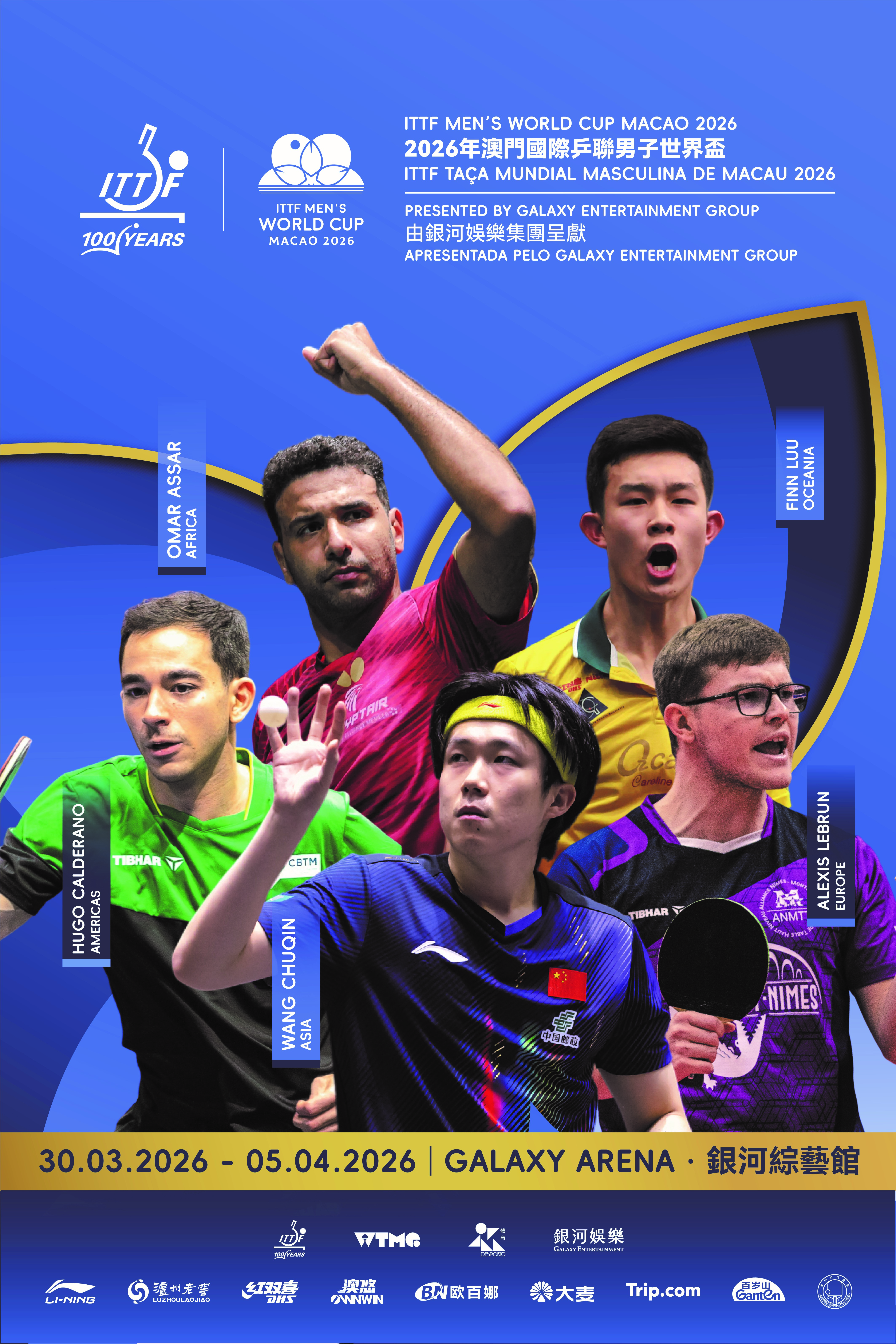 3月30日至4月5日,2026年澳門國際乒聯男子及女子世界盃將在銀河綜藝館舉行,由體育局、銀河娛樂集團及世界乒乓球管理集團主辦,澳門乒乓總會協辦,共96名運動員參賽。該賽事與奧運會乒乓球賽事、世界乒乓球錦標賽並稱為世界乒乓球三大賽事。
